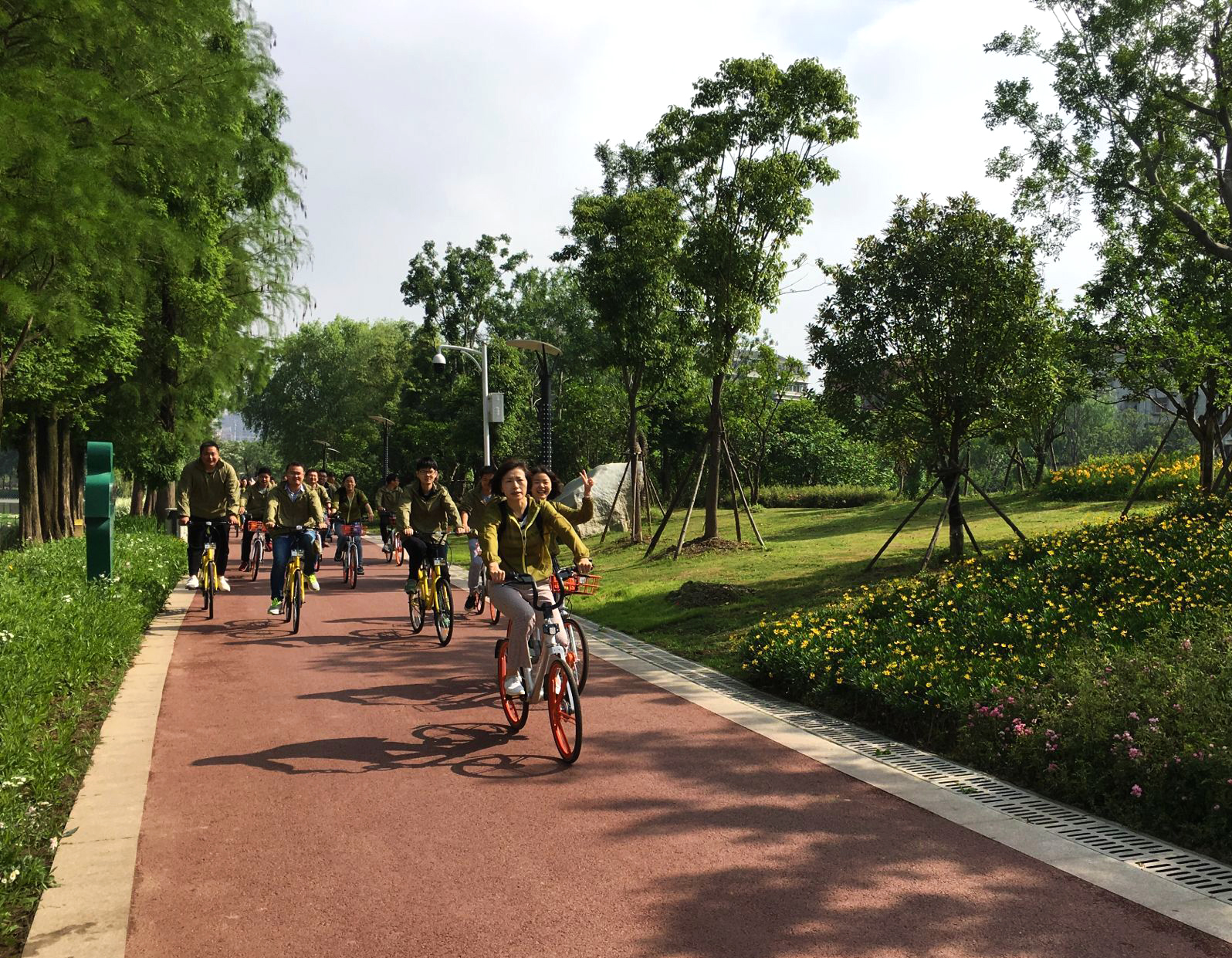 五月的清晨涼風(fēng)習(xí)習(xí),天氣爽朗。上午八點(diǎn)半,大家統(tǒng)一著裝,齊聚墨水湖公園,黨支部書記周紅一番激情飛揚(yáng)的致辭迎來了本次活動(dòng)的重點(diǎn)——騎行參觀我公司承建的墨水湖公園項(xiàng)目。